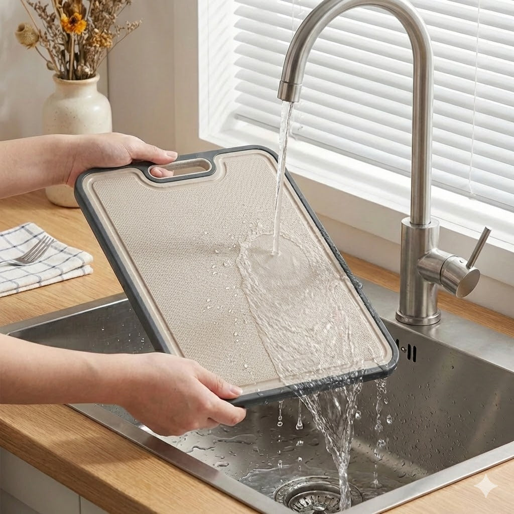 Sí. El lado de titanio puro es no poroso, no absorbe bacterias, líquidos ni olores. Es ideal para carne y pescado crudos.